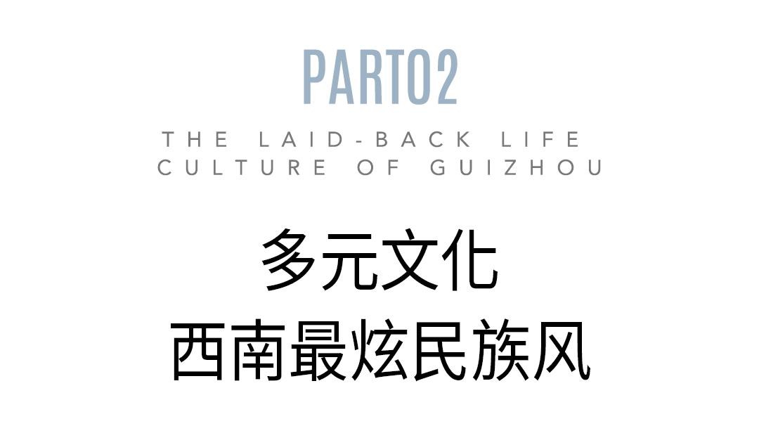 各个民族聚落隐居于山间、河畔,顺应自然,延续理念。他们同时受到贵州“中间高四周低”特殊地形的影响,不断接受着临近的楚粤、滇、巴蜀等文化的深度影响,形成了自己独具特色的建筑风格、服饰、美食、民俗、信仰等文化体系。在贵州境内,经过漫长的发育,保留了近48个少数民族,更孕育了约100项各具特色的非遗,比如侗族大歌、苗族芦笙舞、苗族跳花灯、安顺地戏、苗绣、水族马尾绣、织金砂陶等等。