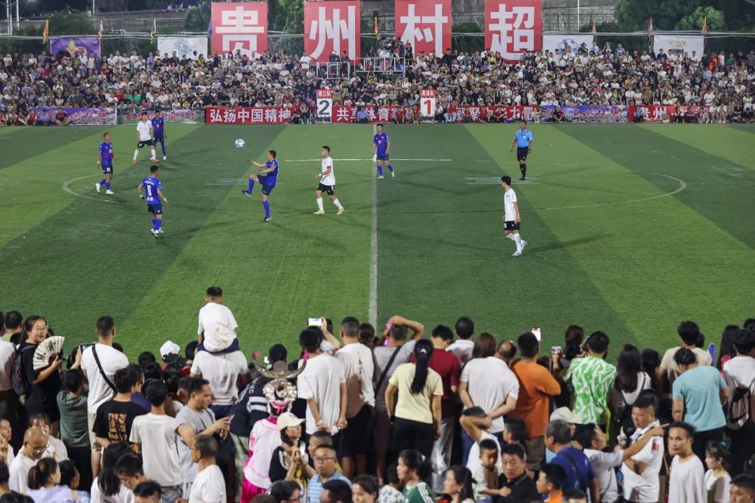 这场盛大的“村超”可不局限于本地,它不仅走出了贵州,还走向了世界,源源不断地吸引了世界各地人的围观。2023年11月,贵州“村超”联队应香港明星足球队之邀赴港参赛,在香江畔上演了一场“村味”与“港味”的激情碰撞。比赛中,“村超”队员不仅展现了草根足球的纯粹与热情,还通过民族歌舞表演、非遗文化展示等活动。此后,贵州村超频频与港澳台地区交锋,比赛同时,也传播了贵州侗族大歌、苗族蜡染等传统的非遗文化。