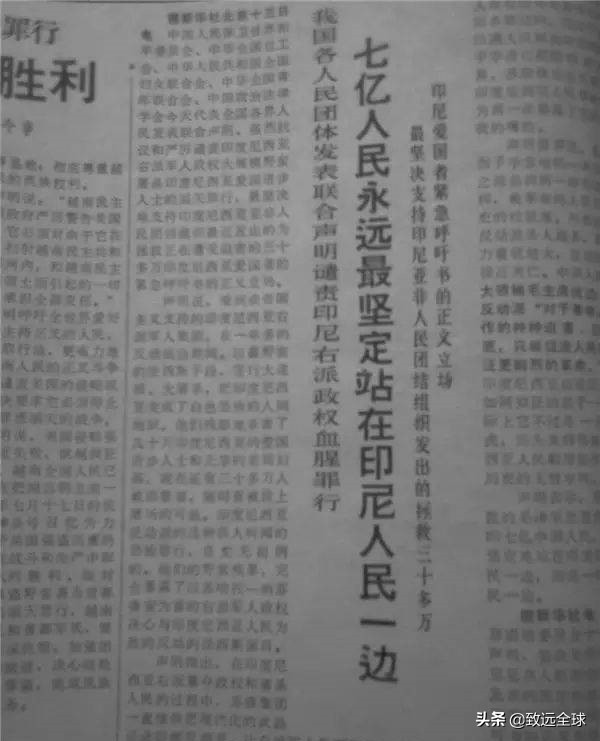 而全国死亡人数高达100多万,其中华人人数50多万。当时我国对于印尼的诬陷以及残暴行为,发表了强烈的谴责。奈何那时国力微弱,我国与印尼相隔较远。印尼的人民根本无法看到我国的 发声。