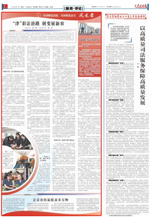 他们以“责无旁贷”的担当精神,构筑起以审判工作现代化支撑和服务中国式现代化建设的法治服务“网络”;以“如我在诉”的工作态度,努力让人民群众在每一个司法案件中感受到公平正义;以“精益求精”的专业追求,不断提升司法公信力和人民群众的司法获得感;以“枝叶关情”的为民情怀,用心用情解决好人民群众的急难愁盼问题,生动书写着超大城市治理这道“时代必答题”的司法答卷。