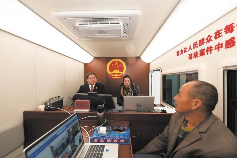 不一会,王宝德已经用5G“车载便民法庭”接收到了合江法院传来的调解书,老白当场签了字,并表示回家凑凑就马上转钱。