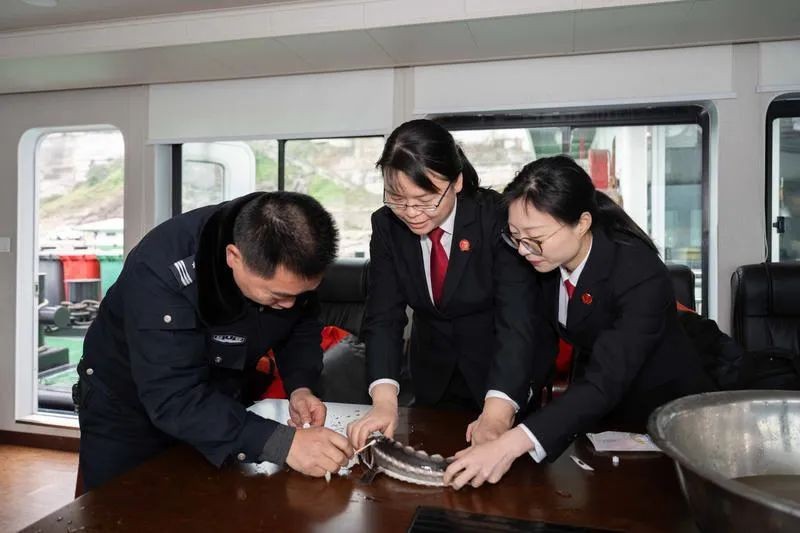 “这是江津区法院参与建设的鱼儿‘江上医院’,让鱼儿在这里适应一段时间,可以避免收容鱼类因环境剧烈变化引起应激反应,提高存活率。两年多来,共收容救护法院审理非法捕捞刑事案件中、护渔队巡护中发现的受伤鱼类一万余尾。”船舱内,一名年轻的女法官刚为受伤的长江鲟涂抹好伤药,准备将鱼儿放入甲板下的野化池中。