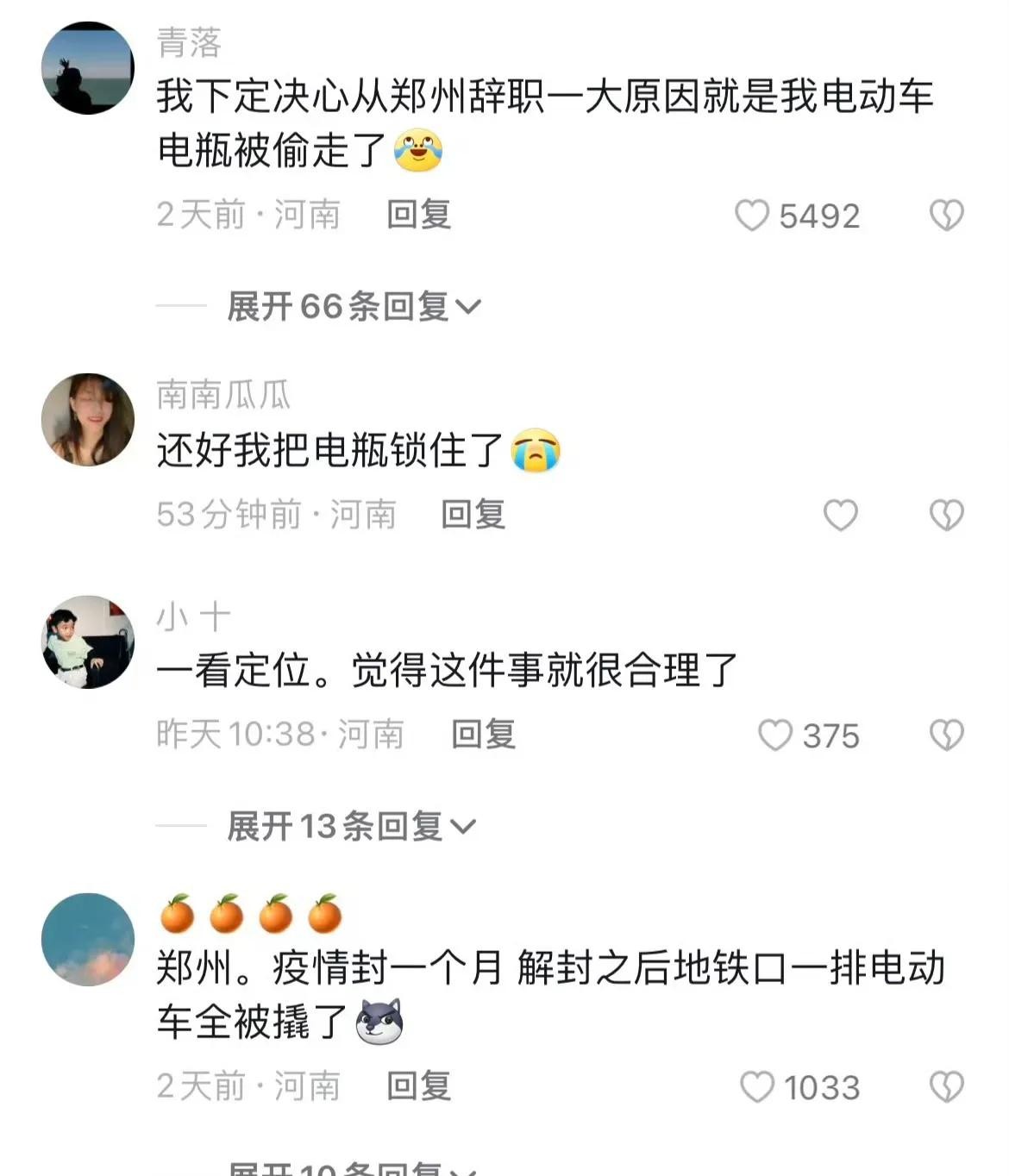 更有不少网友评论,离开郑州的原因就是从电动车被偷开始