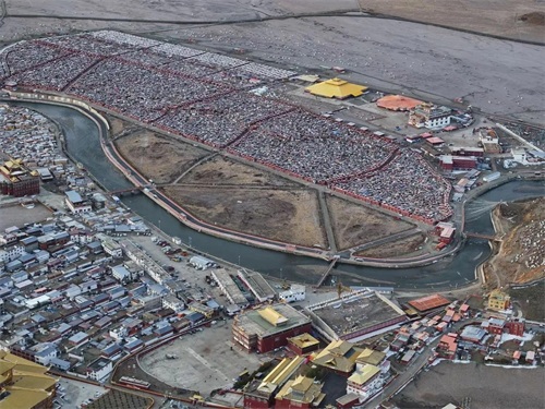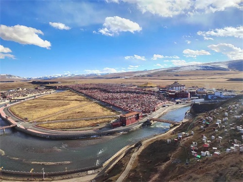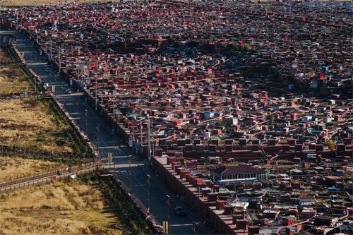 亚青寺(觉姆岛)—世界上出家女性最多的地方,与色达五明佛学院齐名,不同于佛学院依山而建,亚青寺是绕河而建,岛内不允许成年男性进入,每到冬日,觉姆们会在山上或自建牢固的房顶上不足1平米小房子百日闭关,只有极少数可通过考核,获得阿秋喇嘛成就。