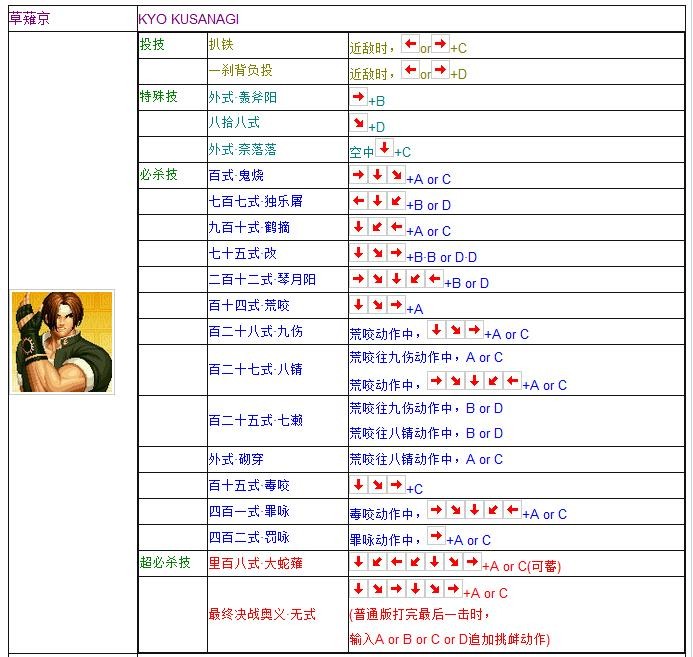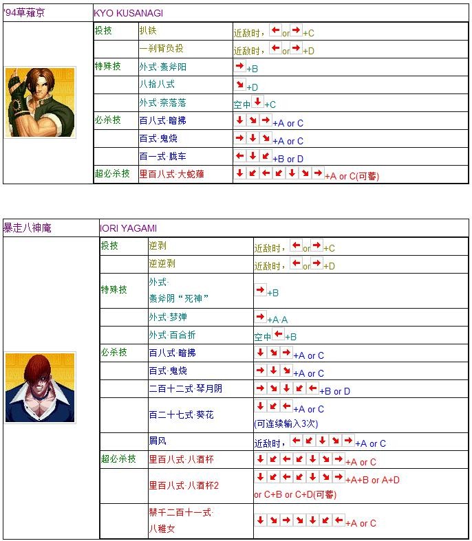 拳皇97全人物摇杆键盘出招表 妈妈再也不用担心我的97了