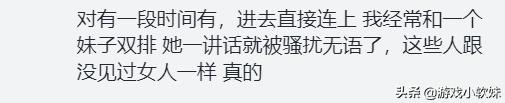 还有网友表示在还有队伍语音的时候,妹子讲话还经常被骚扰。这样的现象其实在其他游戏中也有,许多男性玩家发现妹子之后就会进行言语调戏。这也是许多妹子不喜欢语音的原因之一。