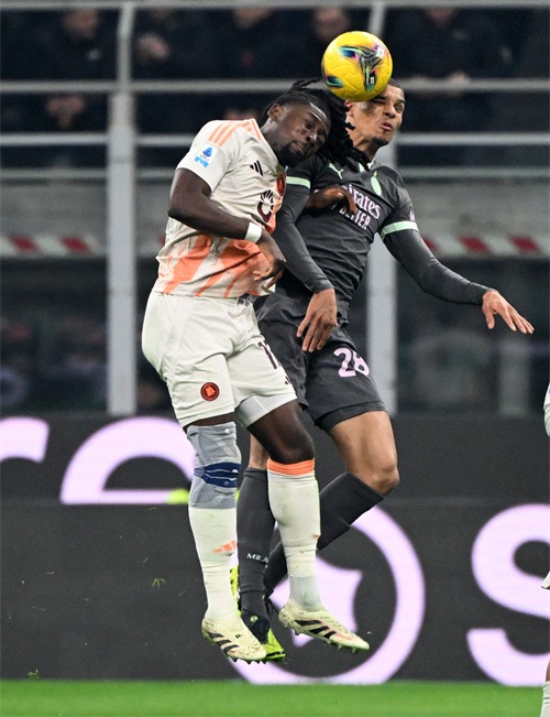 12月29日,AC米兰队球员马利克-佳夫(右)与罗马队球员科内在比赛中争顶。 新华社发(阿尔贝托·林格利亚摄)
