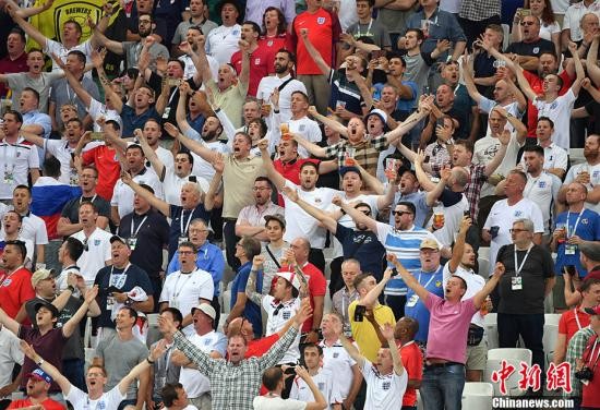 看台上的英格兰球迷。 (中新社记者 毛建军 摄)