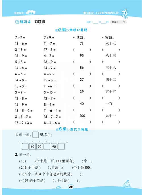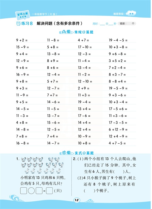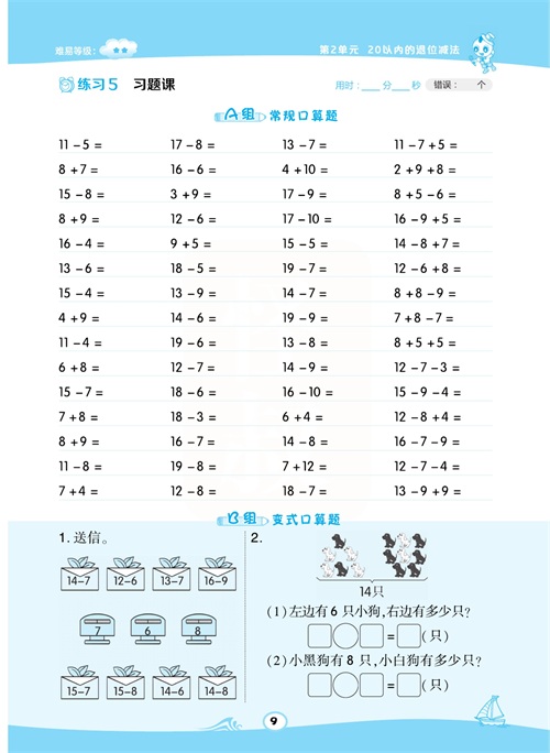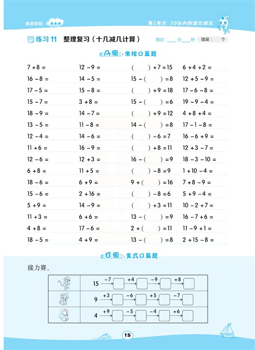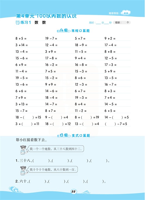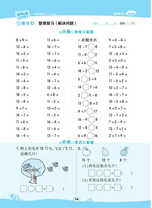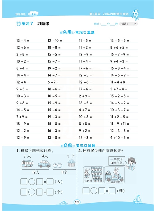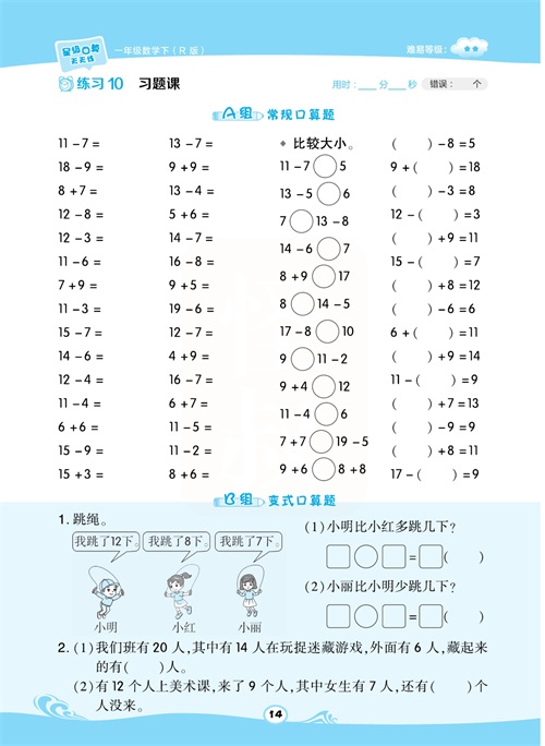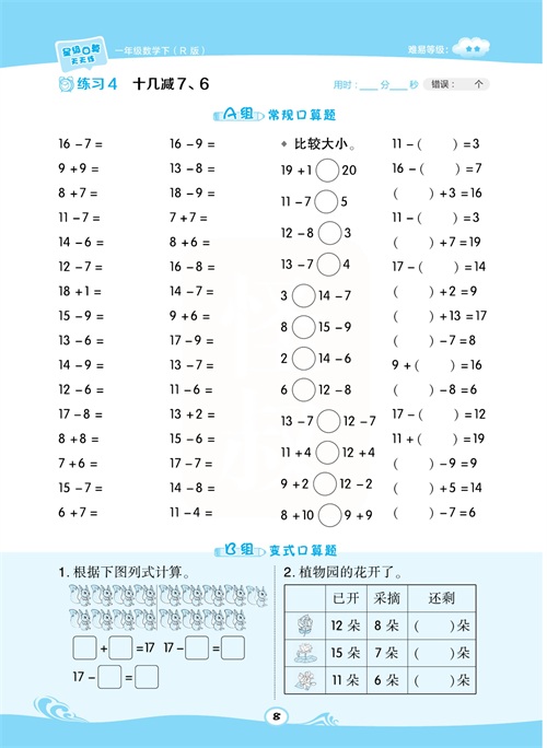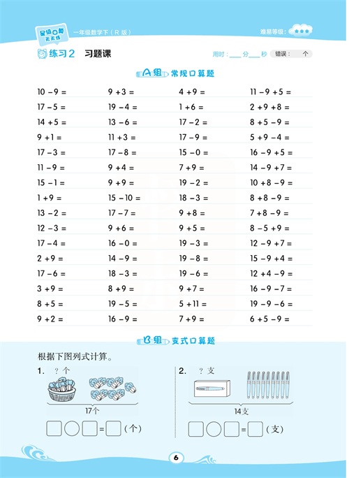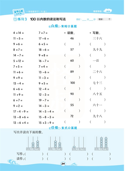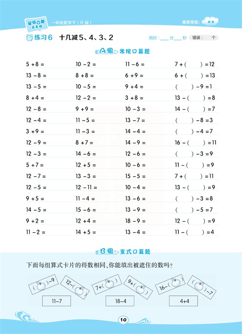 一年级数学下册:【50内加减法】想要计算准又快,就得每天练一练