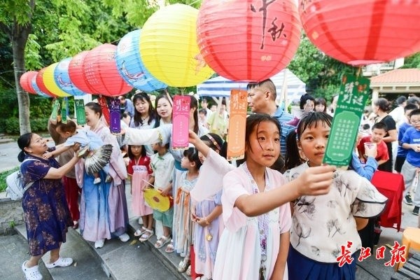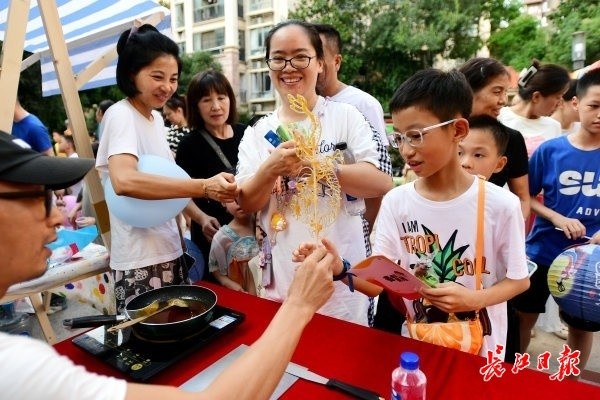长江日报大武汉客户端讯 9月17日傍晚,武汉市汉阳区南国明珠小区三期的中心广场上热闹非常。居民们在广场上绘糖画、做月饼、制花灯、猜灯谜……丰富的游园活动令大家欢笑连连。
