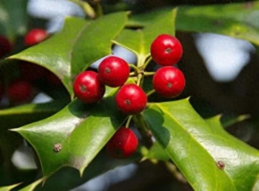 到了秋天,枸骨还会结出红彤彤的果实,像一颗颗小巧玲珑的宝石,点缀在绿叶之间,煞是好看。虽然枸骨的果实火红火红的,非常的诱人。不过大家还是远观为好,尽量不要触碰它,一不留神就会被刺到。