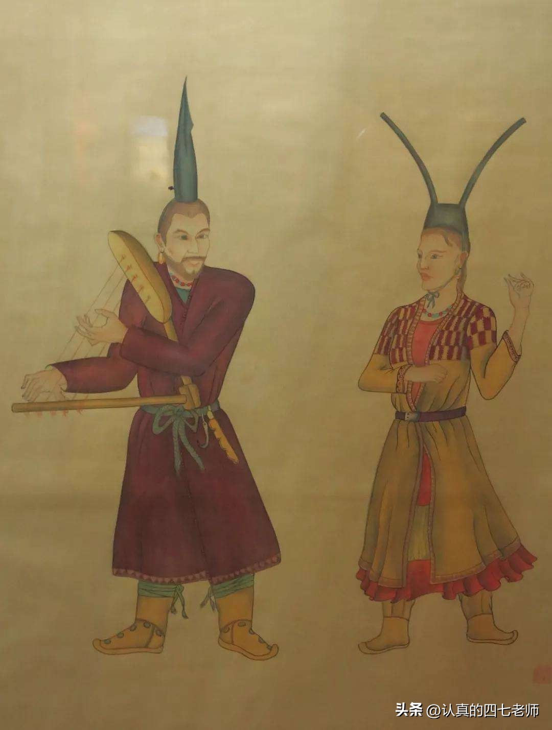 车师人一共有好几个小国家,比如前面已经讲过的车师前国,车师后国等等,从我们现在已经发掘出来的车师人墓葬中可以了解到,车师男性他们身材魁梧,头戴毡盔,腰系皮质箭服,佩有锋利的小铁刀,骑术高超,驰骋在天山腹地和苏贝希内外。车师女性容貌秀美,而且注重形体修饰。她们采用“通经断维”的技法,做出了技艺非凡,巧夺天工的手工制品。