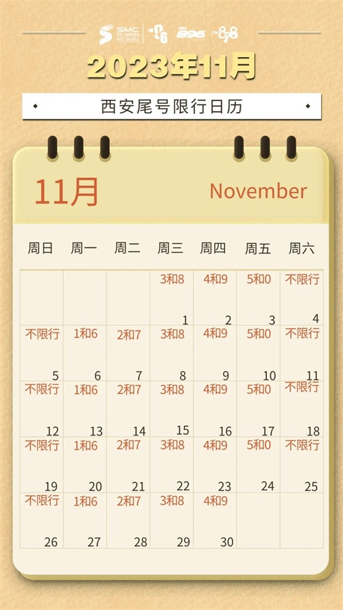 每日限行两个车牌(含临时)尾号(若尾号为英文字母的,以车牌最后一位数字为准)的机动车