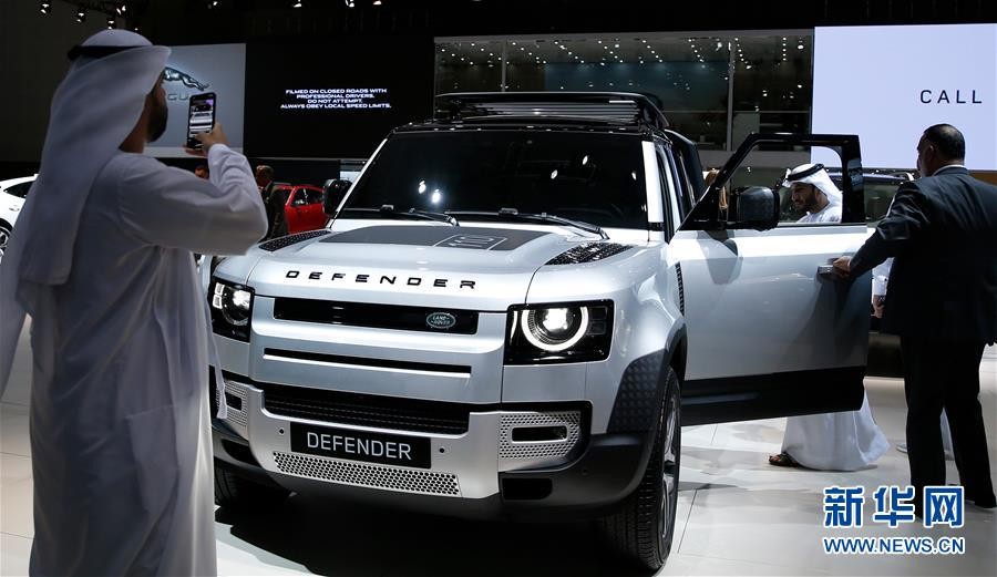 这是11月13日在阿联酋迪拜国际车展上拍摄的2020新款路虎Defender 110 SE汽车。 新华社/欧新