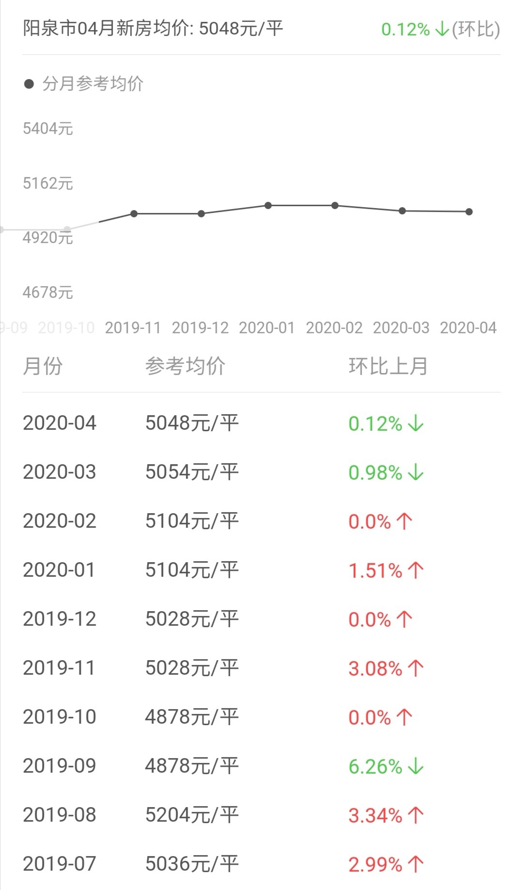阳泉市目前房屋均价5048元/平方米,房价的大幅上涨期主要在2017-2018年,2019年微跌,2020年基本趋于稳定。