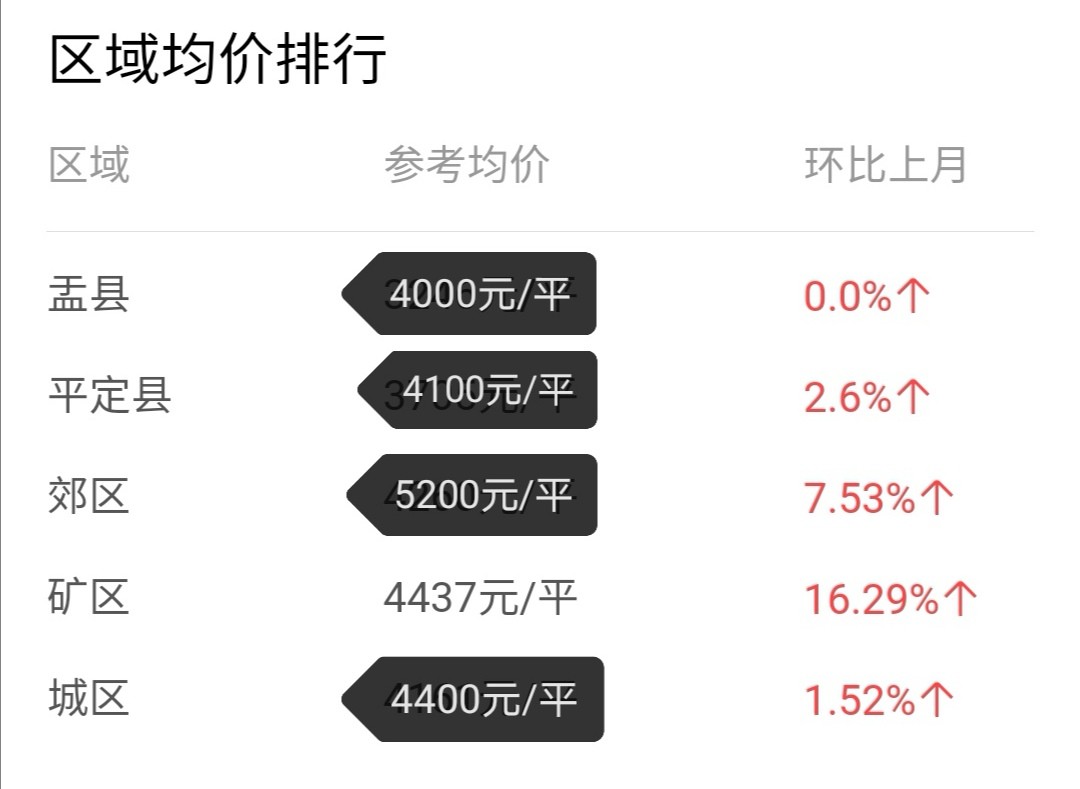 简要说下各区县房价情况: