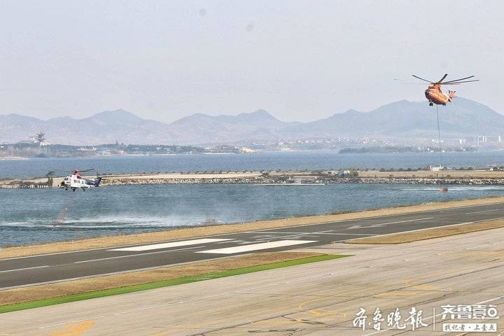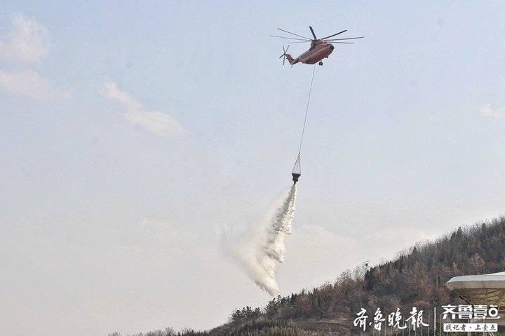 3月10日,山东省航空应急救援莱芜基地进行救援直升机编队联训并开展灭火演练,在参加演练的四架救援直升机中,米-26是目前世界上在役最大的直升机。据山东省航空护林站站长任方喜介绍,该机型能在10秒钟左右灌装最多15吨救援用水,在最大装水量的情况下可喷洒出长300米,宽60至80米的水带,达到快速灭火的效果。