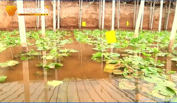 寿光菜农 沈浩元:从12点半左右就下大了一直到明天 就基本没有停下 特别大 在4点左右一看棚里进了水了 急坏了 弄了两个水泵在这里抽