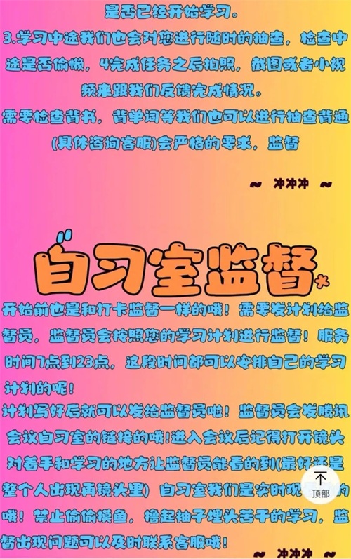 牛咔视频记者在网上搜索发现,这类线上监督服务往往需要消费者在监督开始之前把计划发给监督员,在学习开始、中途和完成任务这几个时间点,监督员都会对消费者进行抽查,这种监督往往根据价格不同分为视频监督、打卡监督和文字监督。