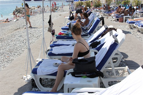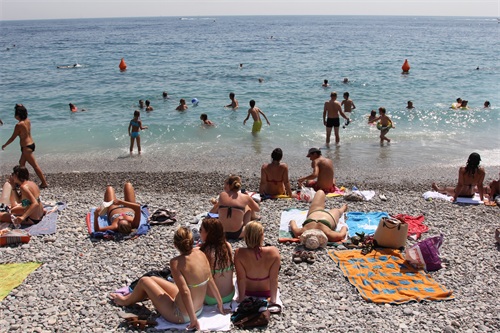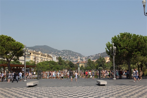 尼斯是一个美丽的海滨城市,三面环山,一面比邻地中海。到了尼斯我先是游览了海滨浴场和海滨大道——英格兰散步大道(Promenade des Anglais)。大街的一面是一望无际的大海,为海滨浴场;另一面是优雅豪华的建筑。着装各异的人流在散步大街悠闲地漫步,车辆穿梭在海岸大街的棕榈树丛中。尼斯的老城(Vieux Nice),街道狭窄,石块地面,店铺林立,是小摊点、饭店、酒吧和夜总会密集的区域。