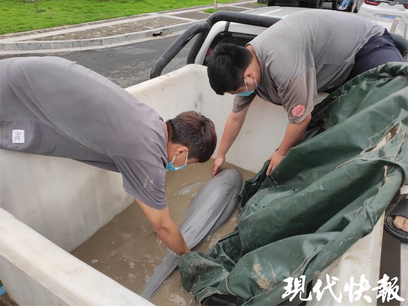 现代快报记者咨询南京江豚水生生物保护协会秘书长姜盟了解到,东亚江豚是一种生活在海洋里的江豚,国家二级保护动物。" 江豚一共有三个物种,其中一个是中国独有的长江里的江豚,生活在淡水,已经是极其稀有的濒危物种。另外两个,一个是生活在我国的黄海、渤海、东海、台湾海域以及日本海域的东亚江豚,也就是这次搁浅的这种江豚。还有一个生活在我国的南海,以及印度洋等海域,叫印太江豚。" 姜盟告诉记者,东亚江豚体背比较窄,也是江豚中最晚分化出来的一个物种。