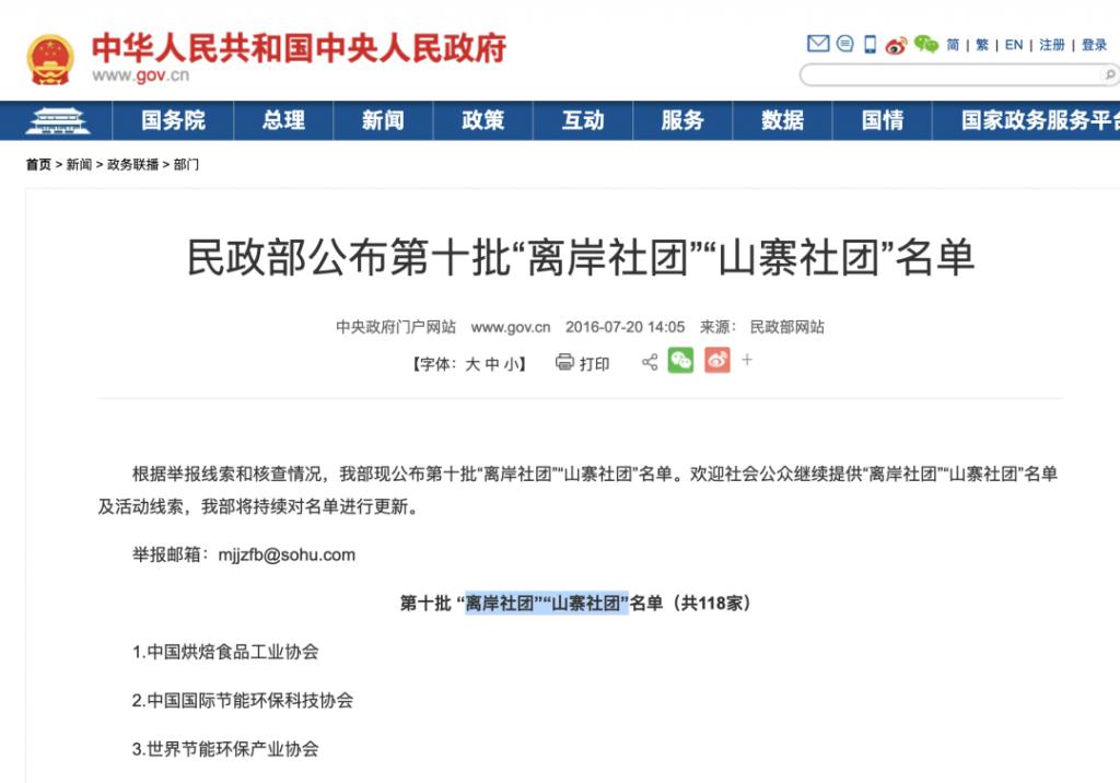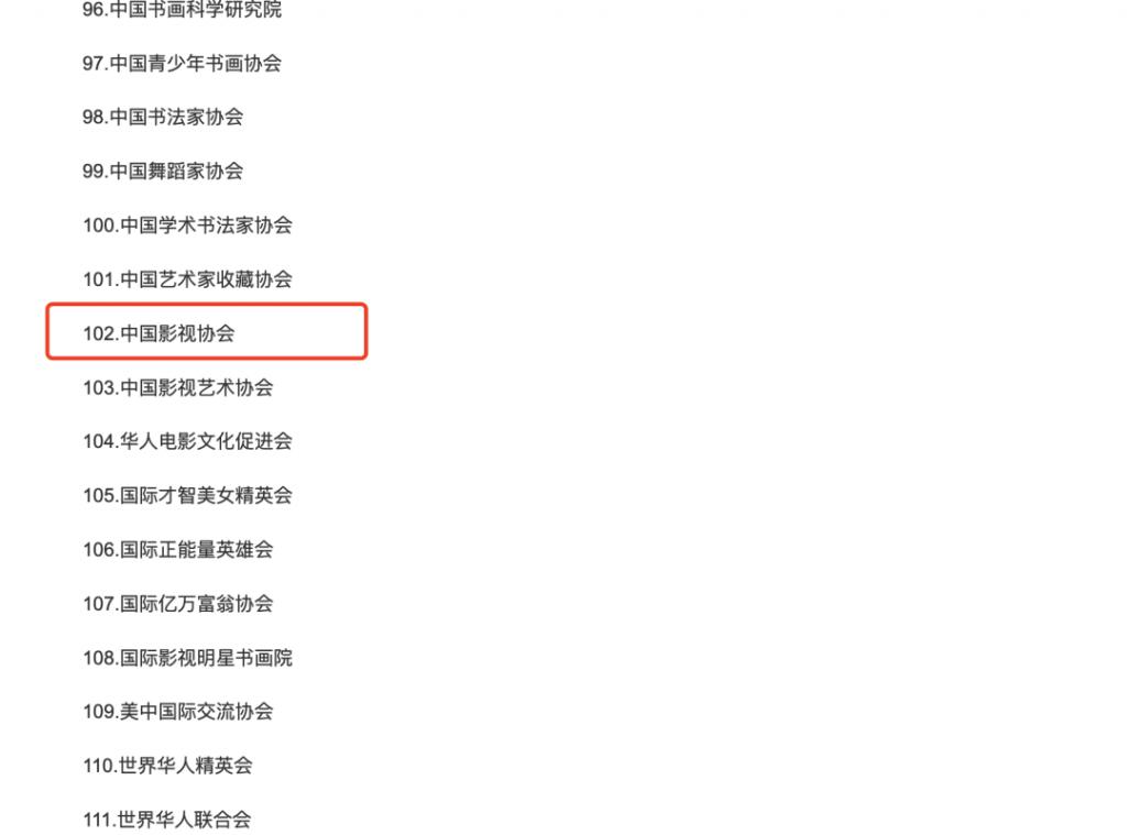 然而记者查询发现,2016 年 7 月,民政部公布的第十批 " 离岸社团 "" 山寨社团 " 名单,中国影视协会在名单中。