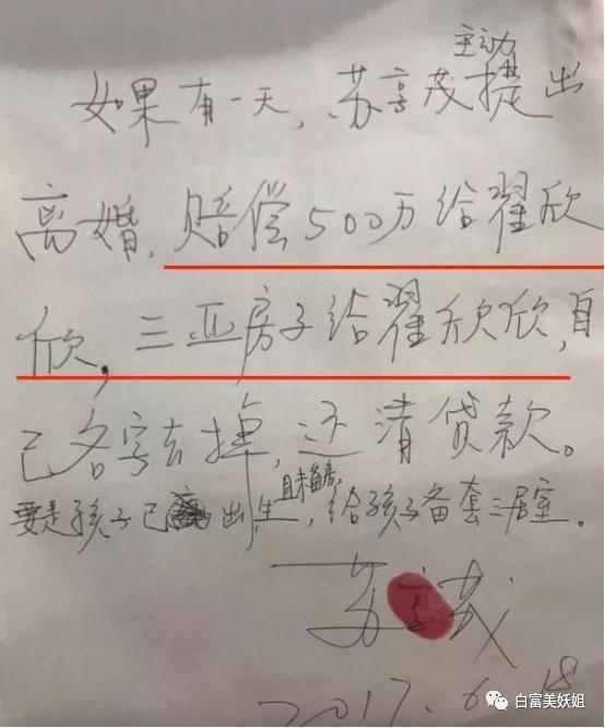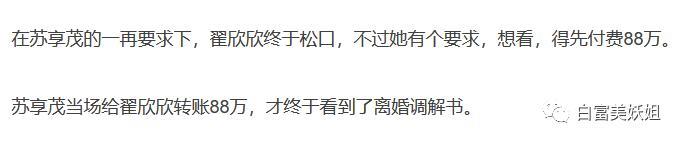 在谈离婚期间,翟欣欣拿出了之前两人私下签的协议,让苏享茂打钱,