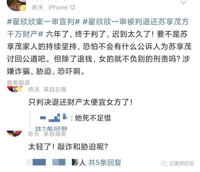 苏享茂被逼自杀,最终翟欣欣却只被判返还财产,网友:便宜她了。