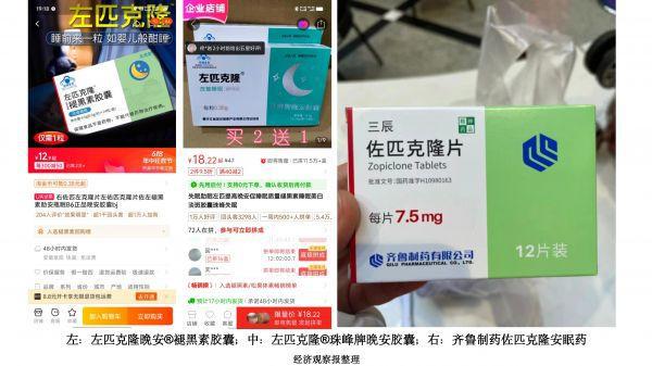 这个问题产生的原因在于,两款产品的名字中均有 " 左匹克隆 " 的字眼。据记者了解,安眠药中有一种常见品类,通用名字叫 " 佐匹克隆 ",这类药物只能由医生开具处方在医院药房内取得,流通受到严格管制。