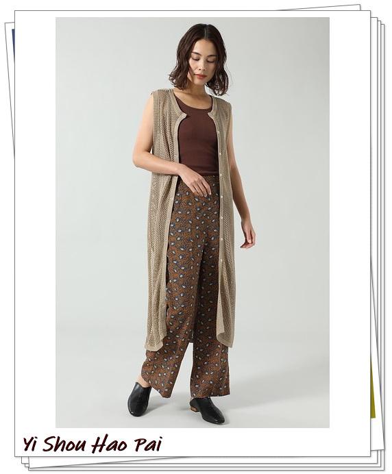 棕色上衣使轻熟女士看起来诱人,适合30到40岁的女性穿搭。添加了具有增加季节感的透明长款针织背心,从而打造出具有流畅感的夏季造型。
