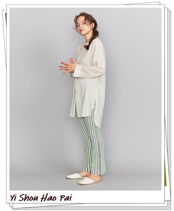 即使采用简单的白衬衫和条纹裤的组合,也会创造出成熟的夏季穿搭。鞋子也是白色的,在夏天的装束中和上衣保持一致,再选择一个白色的小袋,以获得有统一感的look。