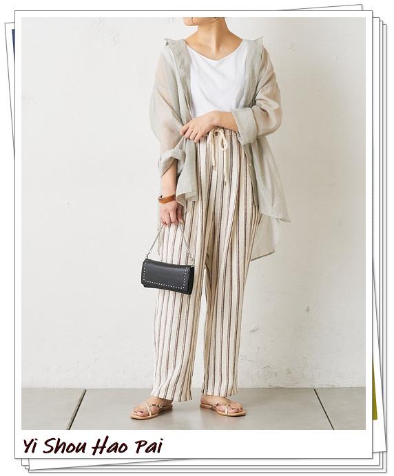 象牙色条纹图案设计清新,非常适合夏季穿搭。甚至简单的上衣也可以搭配条纹图案裤子,打造出良好的夏季装。