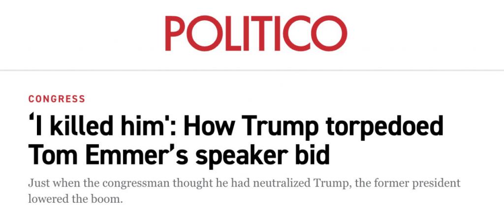 24 日早些时候,共和党人投票提名众议院多数党党鞭埃默为议长候选人,但来自 26 名共和党人的反对令埃默受到巨大压力。值得注意的是,特朗普还在社交媒体上也发声反对他的提名,这令埃默受到巨大压力。特朗普表示,埃默 " 完全与共和党选民脱节 ",是一个信奉全球主义的 "RINO(伪共和党人)",甚至给一些议员打电话明确表达反对意见。
