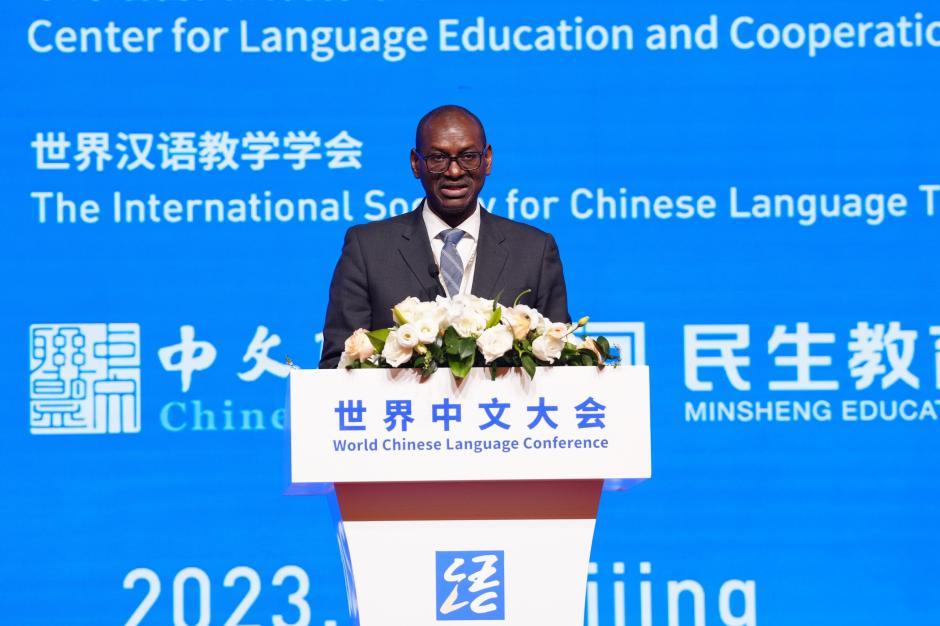 中外语言交流合作中心主任马箭飞、世界汉语教学学会会长钟英华、民生教育集团执行董事,总裁左熠晨、大连外国语大学校长刘宏、开封大学党委书记谭贞、塞内加尔共和国总统特别顾问Souleymane FALL、科特迪瓦共和国技术教育、职业培训和学徒制部部长办公室主任Moustapha Karam SANGARE等出席大会并致辞,科特迪瓦共和国驻中华人民共和国大使Adama DOSSO、塞内加尔共和国职业培训、学徒和融合部国家职业培训办公室主任Mamadou Mounirou LY、中外语言交流合作中心党委副书记、世界汉语教学学会秘书长宋永波,日本青少年育成协会理事林隆树等中外嘉宾出席大会。