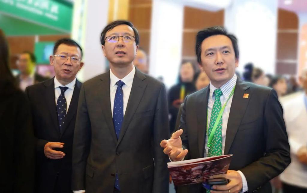 民生教育集团执行董事、总裁左熠晨向莅临展台的国家教育部副部长陈杰、中外语言交流合作中心主任马箭飞等领导介绍集团发展情况。