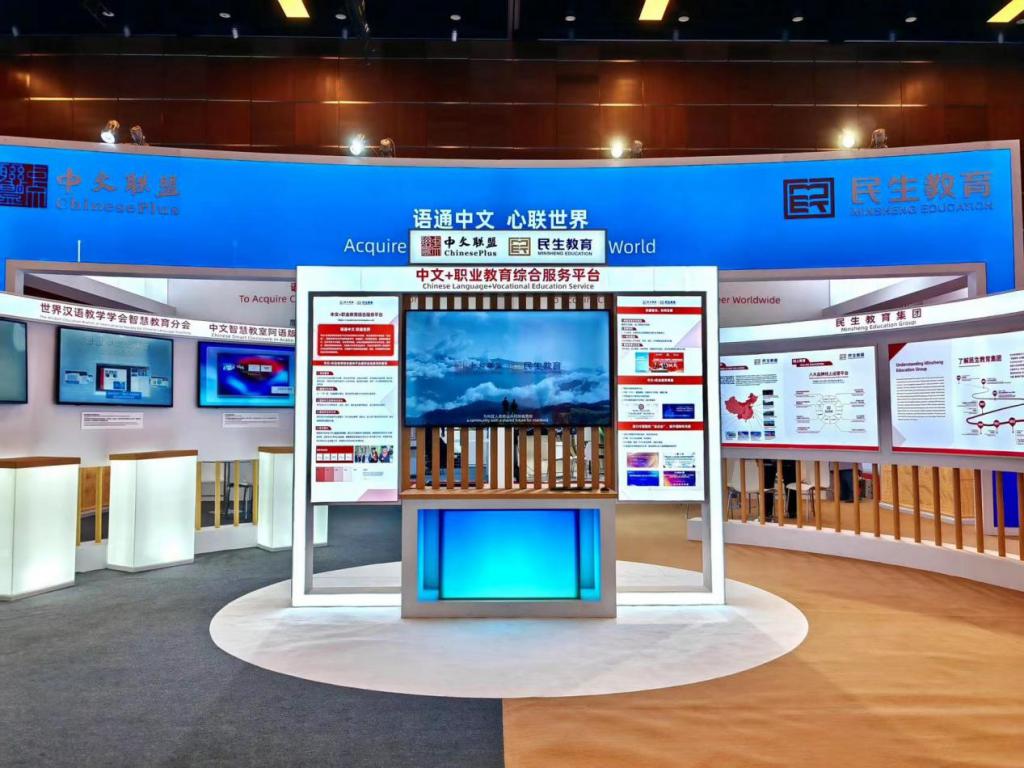 会议期间,同步举办了世界中文大会语言展。民生教育集团与中文联盟联合推出了 " 中文 + 职业教育综合服务平台 " 的展示。该平台聚焦本科院校、职业院校和中资企业 " 走出去 ",聚焦全球中文学习者的语言学习、技能提升、来华留学交流、旅游等需求,充分发挥中文联盟、民生教育集团、丝绸之路国际教育中心在平台化、数字化、智能化的资源和优势而打造的,是集中外教育交流合作、学生来华留学等一体化的中文 + 职业教育综合服务平台,为各国学习者提供更加便捷、高效、可持续的中文和职业技术教育综合服务。