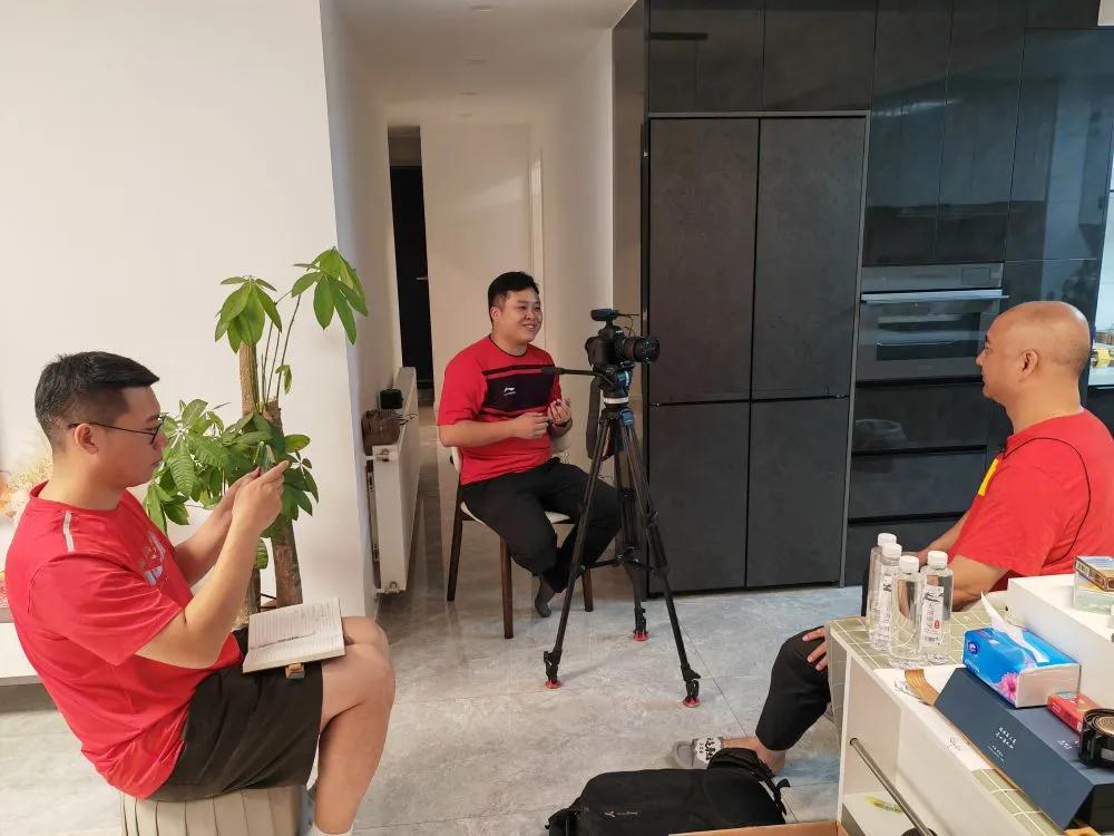 4 日凌晨,郑建坪(右一)接受新华社记者专访。新华社记者 梁建强 摄