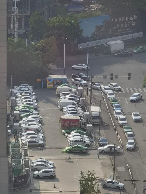8 月 26 日下午 4 时许,成都市龙泉驿区某公共充电站早已排满等候充电的网约车和出租车。由于极端高温天气,川渝电力供需紧张,先后发布了有序用电政策。为响应政策要求,此时该充电站实际上还未开放充电。