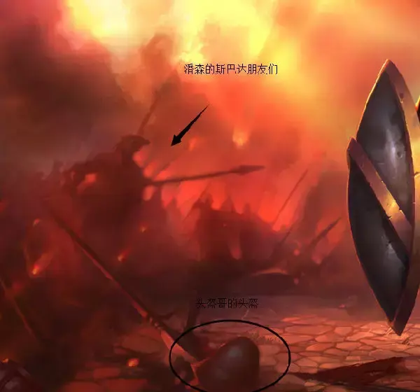 潘森的斯巴达之魂皮肤原画中也有头盔哥的身影~~