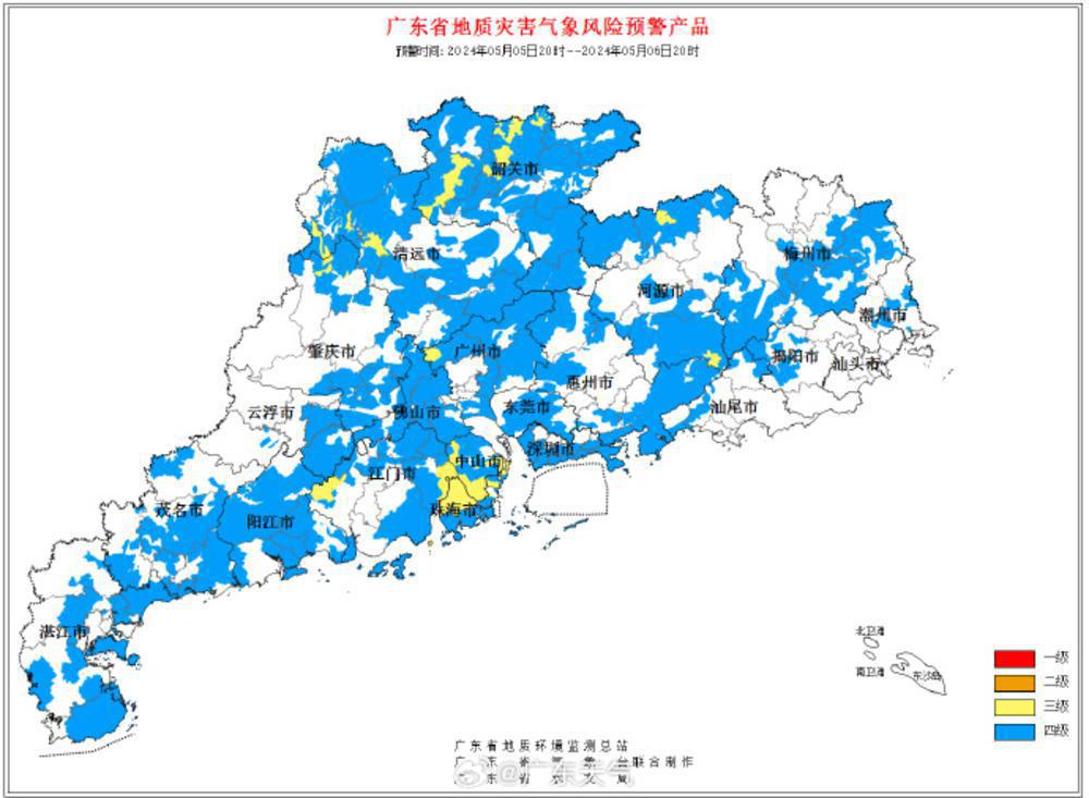 广东省气象局 5 月 5 日提醒,尽管广东进入强降水间歇期,但前期持续的强降水导致广东土壤含水量高,因地质灾害具有滞后性,各地仍需继续做好相关防御工作。