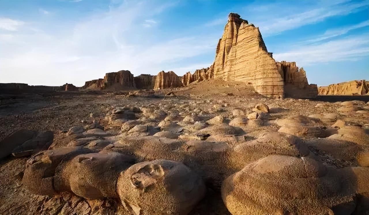 大约4亿年前,哈密大戈壁却是碧波万顷的海洋,是生命的摇篮。又大约过了1.5亿年,古天山隆起,大海逐渐退去。在大约距今1.4亿的侏罗纪时期,这里森林茂密、湖沼遍地、恐龙繁生、生机勃勃。3000万年前爆发的喜马拉雅造山运动,又使这里由湖盆变为山间封闭盆地。来自海洋的暖湿气流被隔绝,气候旱化,泥沙沉积,变成了万古戈壁。大量的海相和陆相地层古生物化石,成为亿万年地质沧桑和物种衍化的见证。