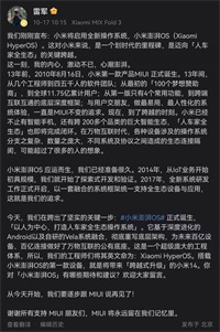 2025 年 10 月 17 号,雷军发文称「 Xiaomi Hyper OS 」 封装完毕,即将启用。