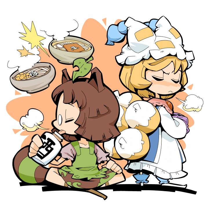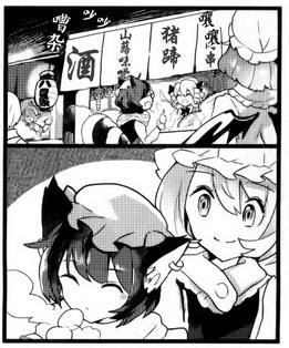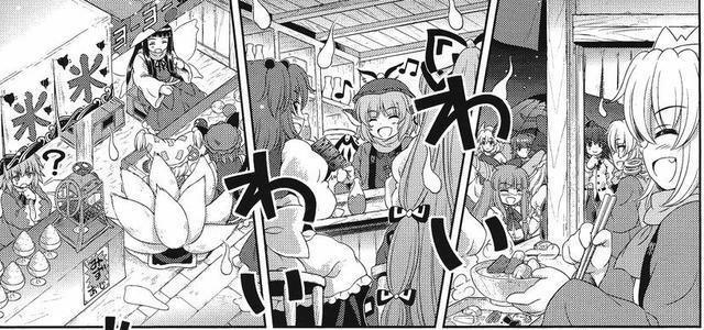 不过,即便派不上什么用场,蓝也还是非常疼爱橙的。在官方漫画里,也经常可以看到她带着橙去参加博丽神社的庙会。