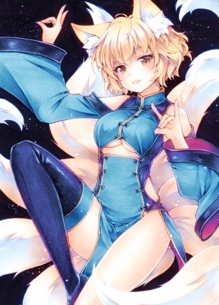 虽然只是一个式神,但蓝毕竟也是EX关卡的Boss,单独拎出去就算无法吊打幻想乡的大佬们,但实力还是不虚的。再加上九尾狐这种喜闻乐见的设定,蓝本应该人气超高的,但实际上人气平平。如果她的形象再年幼一些、性格再任性一些,或许会更受欢迎吧。