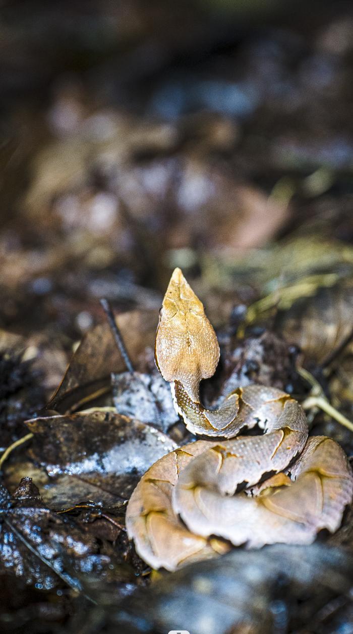 只有一些鼎鼎大名的蝮蛇才是最危险的,例如五步蛇。它生性懒惰,喜欢盘踞在枯叶中守株待兔。五步蛇的花纹与落叶的颜色很像,即使走近了也很难分辨,所以穿上厚厚的雨靴会很有帮助。