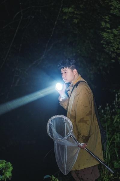 在6月3日徒步探访焦溪疣螈栖息地的过程中,空气中漂浮着松木的香味。夜枭的叫声像森林里的鼓点,让人神经紧绷。构树成熟的果实吸引来飞虫,荚蒾白色的花瓣在灯光下十分夺目。黑暗中万物涌动,我们却只有一双眼睛用来发现。