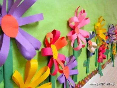 - 幼儿园中班环创主题墙简单大气(幼儿园环创主题墙及楼道) 环创欣赏 只要把彩色卡纸弯成环形,粘贴枝叶,小花朵就站起来了,孩子们可以在叶子上写上姓名,在花心位置粘贴自己...