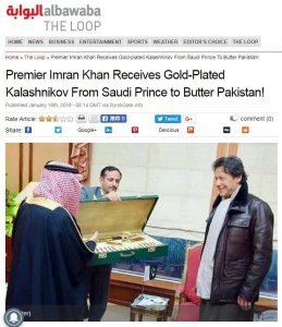 - 沙特王子拜访巴基斯坦总理,赠送对方镀金AK步枪 【环球网综合报道】“沙特王子向巴基斯坦总理赠送镀金突击步枪”,16日,有关照片在社交媒体上传播开来。 据外媒16日消息,沙特...