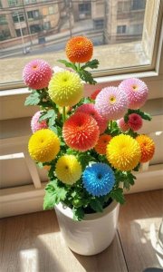- 色彩斑斓乒乓菊盆景,太美了!