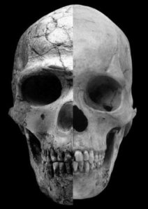 - 男人变娘,文明诞生 图片中对较原始的人(左)和较现代的人(右)的头骨进行了对比。可以看出,原始人的眉骨更加突出,脸的上半部分面积更大;而较现代的人面部轮廓更柔和,眉...